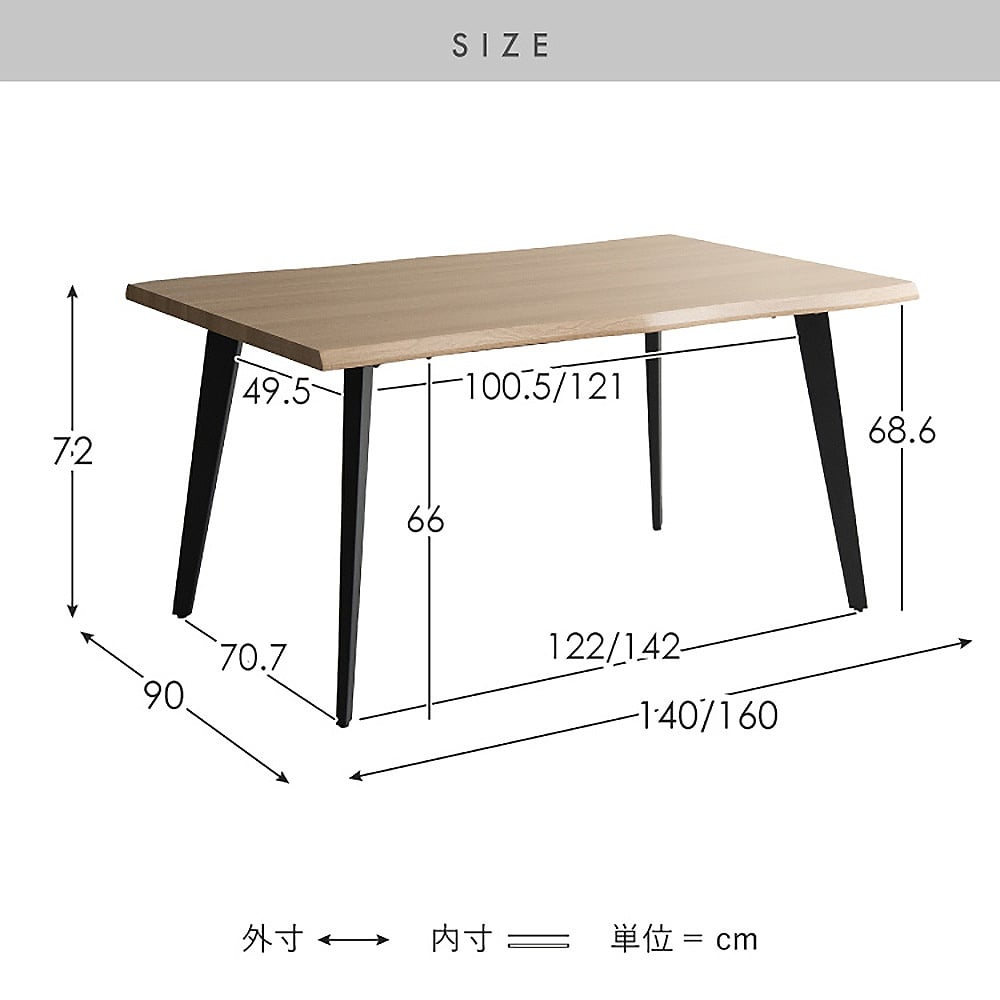 趣ある一枚板風の木製天板が特徴のダイニングテーブル『Trento(トレント) 』。ハの字に広がったブラックフレームがスタイリッシュな空間を演出します。幅140cmと160cmの2サイズ展開、カラーはナチュラルとブラウンの2カラーをご用意。ダイニングの雰囲気やお好みでお選びいただけます。製品重量:32.2kg 組立式(約15分)