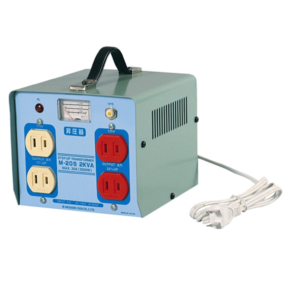 電圧ドロップを即解消、電圧降下による工具の焼損、機能低下を防ぎます。 屋内型昇圧専用トランス。 簡易型・2時間定格のトランスです。 ●容量:2KVA。 ●電流:20A。 ●入力:100V・2P。 ●出力:115V(15%)・2P×2個。 ●出力:125V(25%)・2P×2個。 ●一次電線:1.25mm2×2芯×1.3m。 ●保護機能:サーキットブレーカー(6A)。