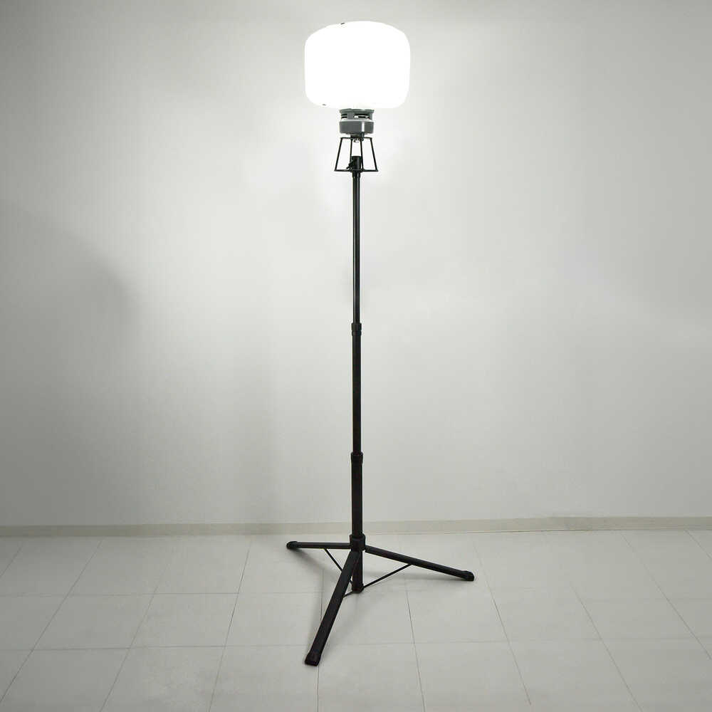 ●メタハラ300Wクラスの明るさです。●超軽量、360度照射、付属のバッグでスッキリ収納できます。●High/Low切替え式です。●ON/OFFスイッチ付きです。●灯具と三脚のセット商品です。●明るさ(lm):HIGH/19200、LOW/10900●幅(mm):832●奥行(mm):832●高さ(mm):1040~1934●消費電力(W):HIGH/147W、LOW/80●コード長さ(m):5●バルーン直径(mm):320●光源色:昼白色●電源(V)(50/60Hz):100●標準消費電力料金:HIGH:4.56円/h ※1kwあたり31円で計算(税込)●球寿命(時間):50000●照射角(°):360●電線仕様:VCT0.75[[MM2]]×3心演色性(Ra):83●屋内・屋外兼用●保護等級:IP65 質量4.1kg