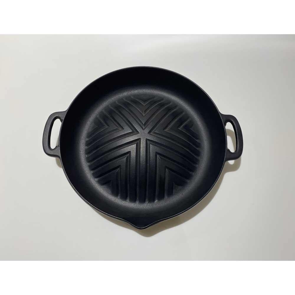 鋳肌が美しい岩鋳のキッチンウェア。お肉の余分な脂を落としてくれます。野菜も香ばしく焼けます。