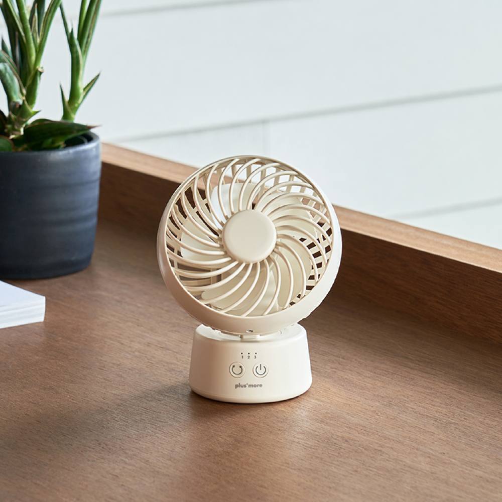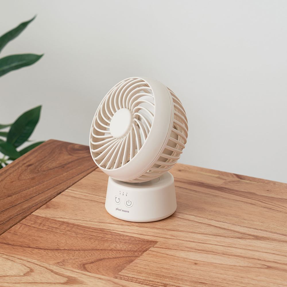 自動首振り機能は左右約120°、上下も手動で約70°まで調節可能。小型扇風機でありながら、必要な機能を十分備え、広範囲に風を届けます。