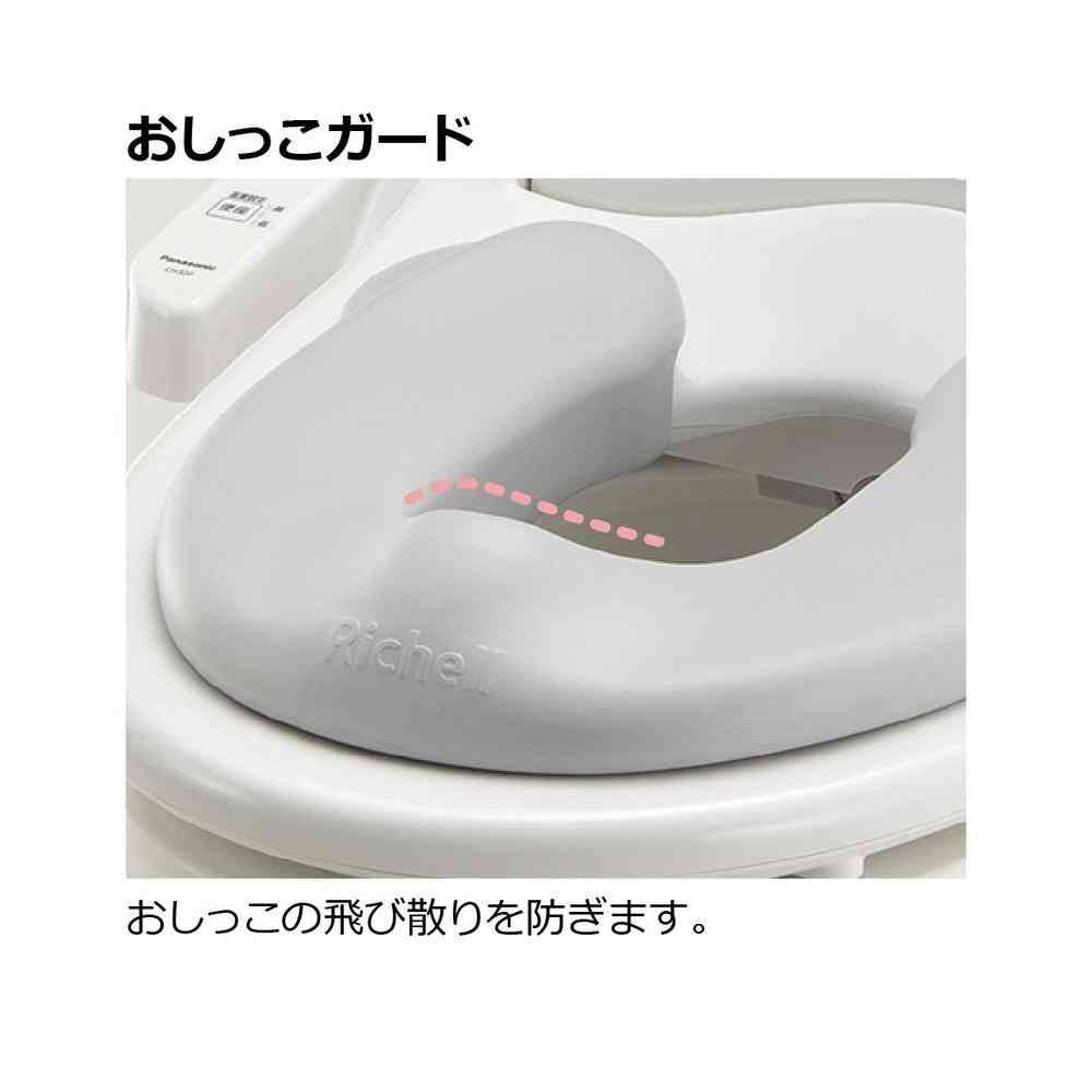 おしりにやさしいやわらか素材。 おしりが痛くなりにくい補助便座です。 ポンとおくだけ、大人用便座の穴にはめ込み、手前に寄せるだけで簡単に使用できます。 便座の後側が繋がっていない、おしりが拭きやすいU型です。 おしっこの飛び散りを防ぐ、おしっこガード付きです。 シンプル構造で丸洗いできるので、いつでも衛生的です。 パンツを全部脱がさずに座るスタイルで使用できるので、ラクに座らせることができます。