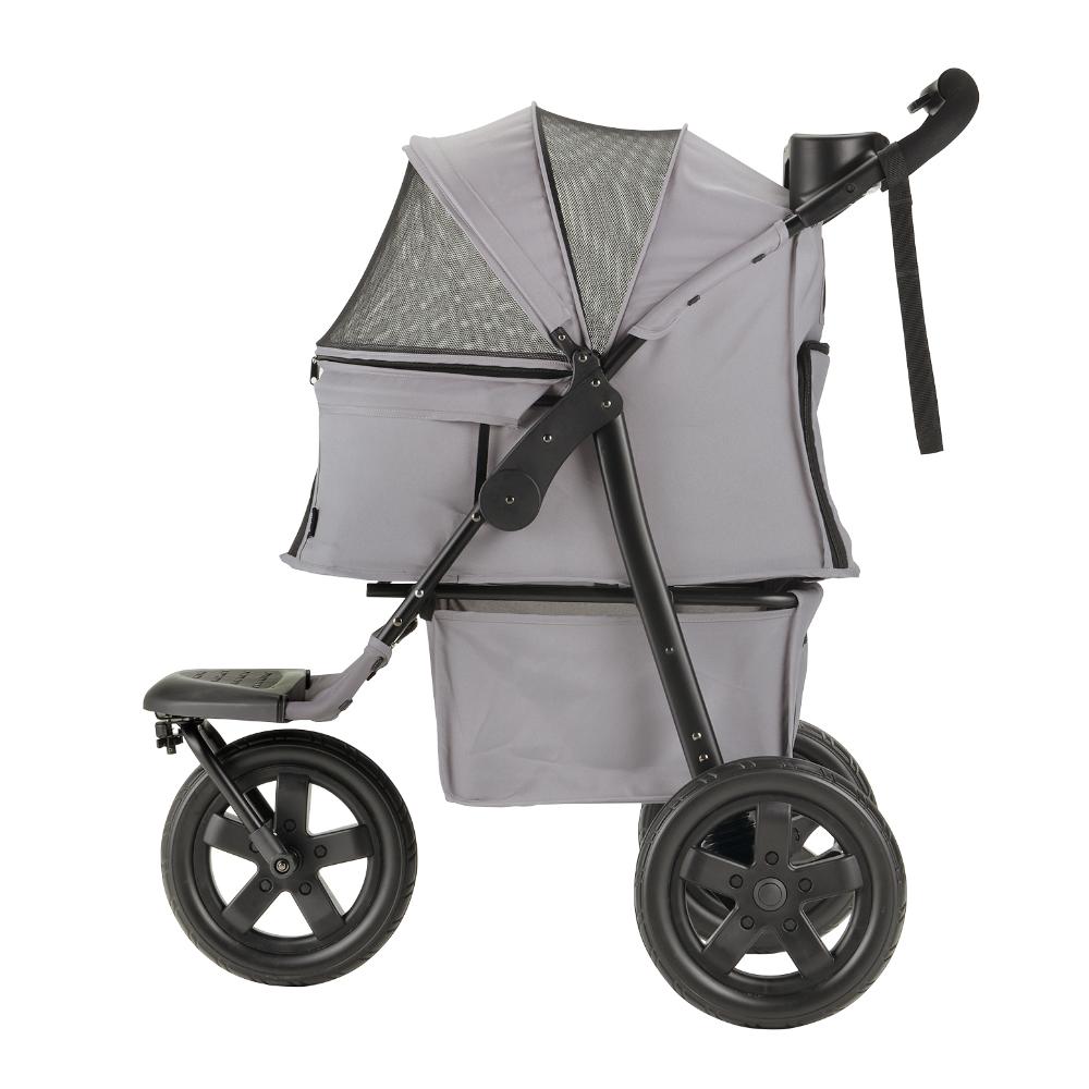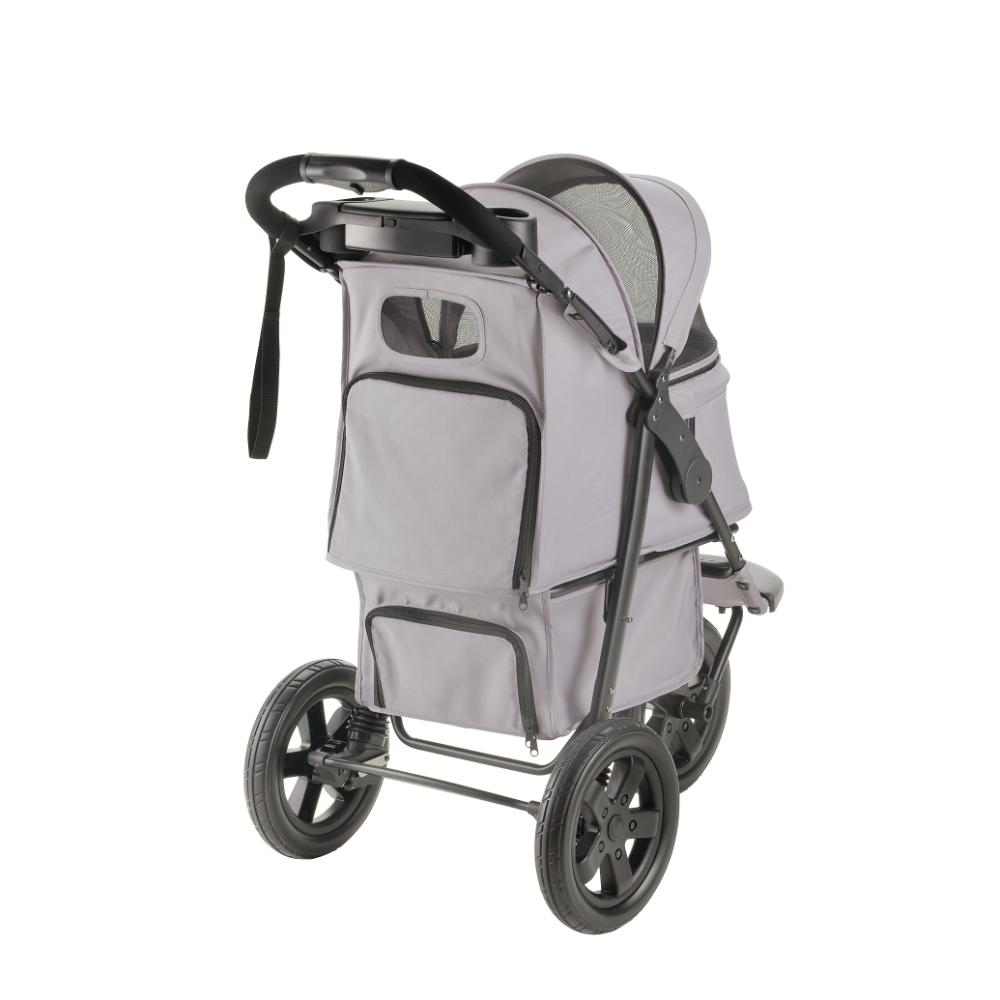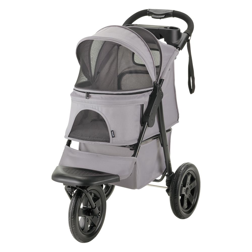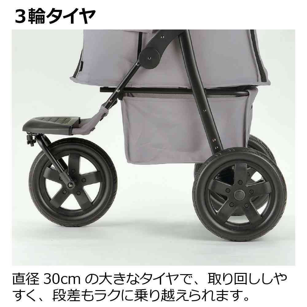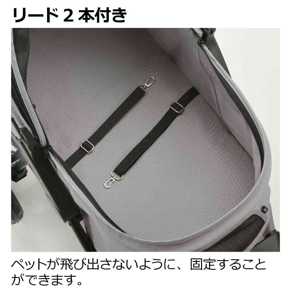 ・ペットと荷物のスペースを区切ることができる仕切り付きペットカートです。 ・背面からも荷物の出し入れができるファスナー付き ・仕切りを倒してペットスペースを広く使うことも出来るので多頭飼いの方にも便利です。 ・ハンドルの折りたたみロックを解除して、片手で簡単に折りたためます。 ・直径30cmの大きなタイヤで、取り回ししやすく、段差も楽に乗り越えられます。 ・路面状況に応じて、前輪を360度旋回から直進に固定できます。 ・飲み物や小物などを入れられるドリンクホルダー付き ・後輪ストッパーを下げるとロックがかかります。 ・ペットが飛び出さないように固定することができるリード2本付 ・適応体重:20kg以下 ・耐荷重:キャリー/20kg、ドリンクホルダー/1kg、バスケット/2kg ・適応種:超小型犬~中型犬