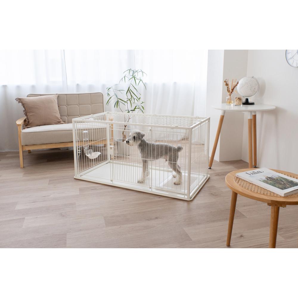 ・用途以外では使用しないでください。 ・犬にリードをつけたままで使用しないでください。本品にリードが引っ掛かり思わぬ事故が起きるおそれがあります。 ・各部品が正しく取り付けられていない場合、重大な事故につながるおそれがありますので注意してください。 ・使用する際は、本品のすき間に犬がはさまり重大な事故につながるおそれがありますので注意してください。 ・犬が予期しない行動をとり、ケガや事故の原因となることがありますので、犬の種類や大きさ、性質に合わせて目の届く場所で使用してください。 ・本品に登ったり物を載せたりしないでください。ケガや破損の原因となります。 ・犬の大きさや性質によっては、体の一部がすき間にはさまるおそれがあります。使用中に発生したはさまりなどによる生体やその他の損害の補償はいたしておりませんので、あらかじめご了承ください。