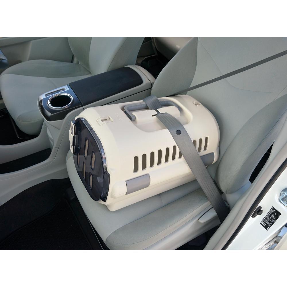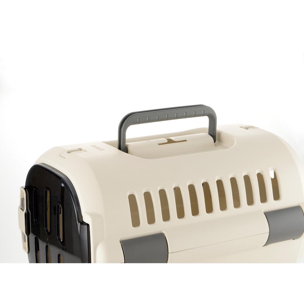 ・お外でキャリー、お家でハウス!スモークドアで落ち着ける空間に。 ・ペットを守る丈夫なハードタイプのシングルドアキャリーです。 ・普段からハウスとして慣らしておくことで、来客時や災害時の移動にも安心です。 ・自動車のシートベルトで固定して、安全にドライブできます。 ・プラスチック製なので、お手入れ簡単です。 ・適応体重:8kg以下(超小型犬・小型犬・猫・うさぎ用)