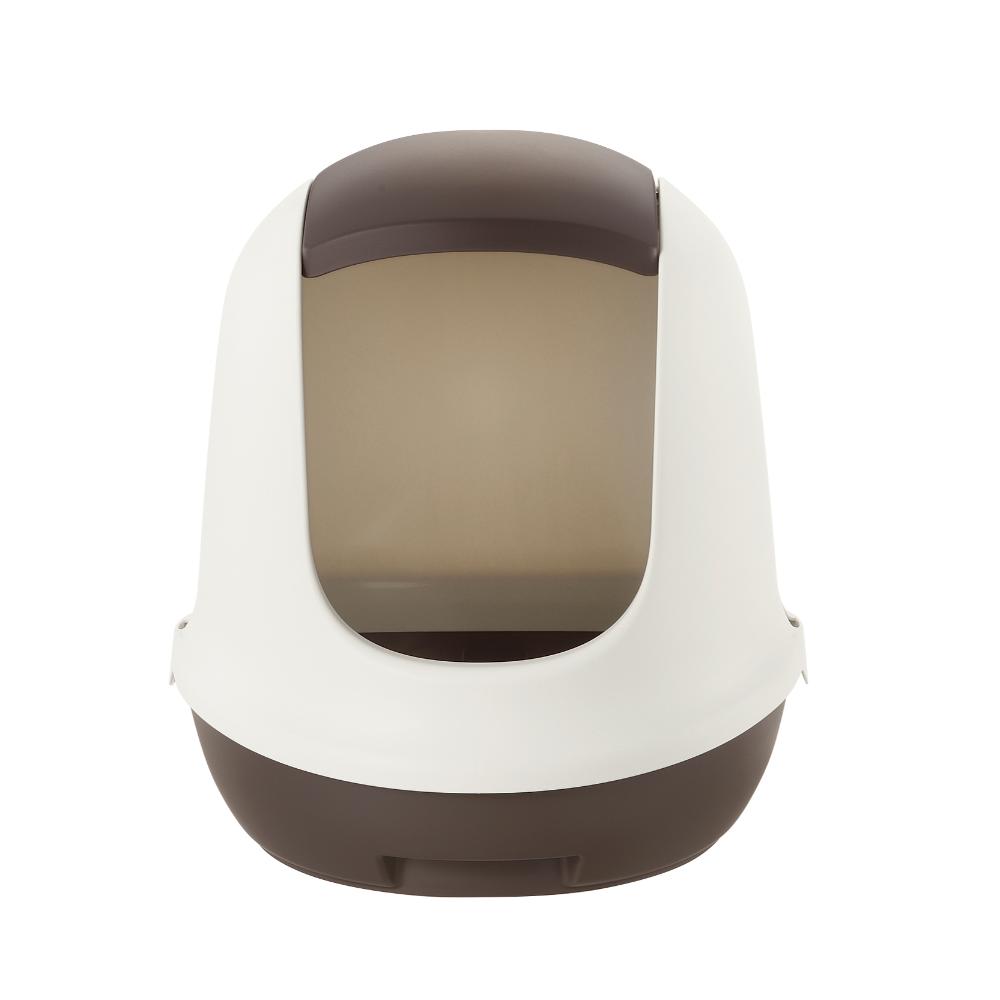 猫砂の飛び散りを軽減するフード付きタイプのネコトイレです。 ■お手入れしやすい広い開口部:フードを外さなくても、トイレ内のお手入れがラクにできます。 ■スコップ付き:スコップはフード部にスッキリ収まります。 ■お手入れ簡単:プラスチック製なので、水洗いが出来てお手入れ簡単