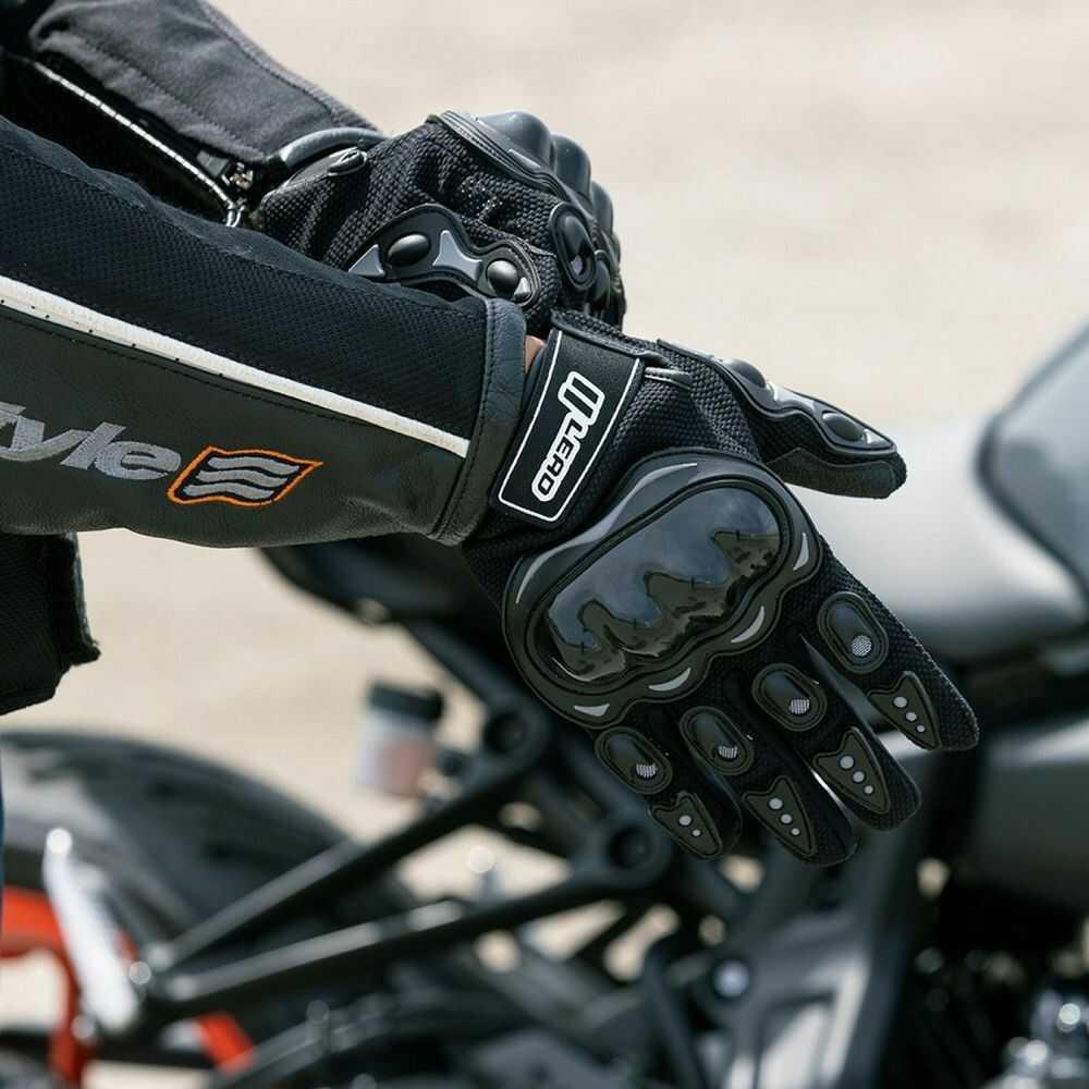 甲部にナックルプロテクターを装備した保護性能の高いライディンググローブ。 手の平部分は動きを妨げずにフィットする滑り止め加工を施したストレッチ素材を採用。 グリップ操作で擦れやすい部分は補強し耐久性を向上。 袖口は締め付け調節が便利なベルクロ式で雨や風の侵入を防ぎます。