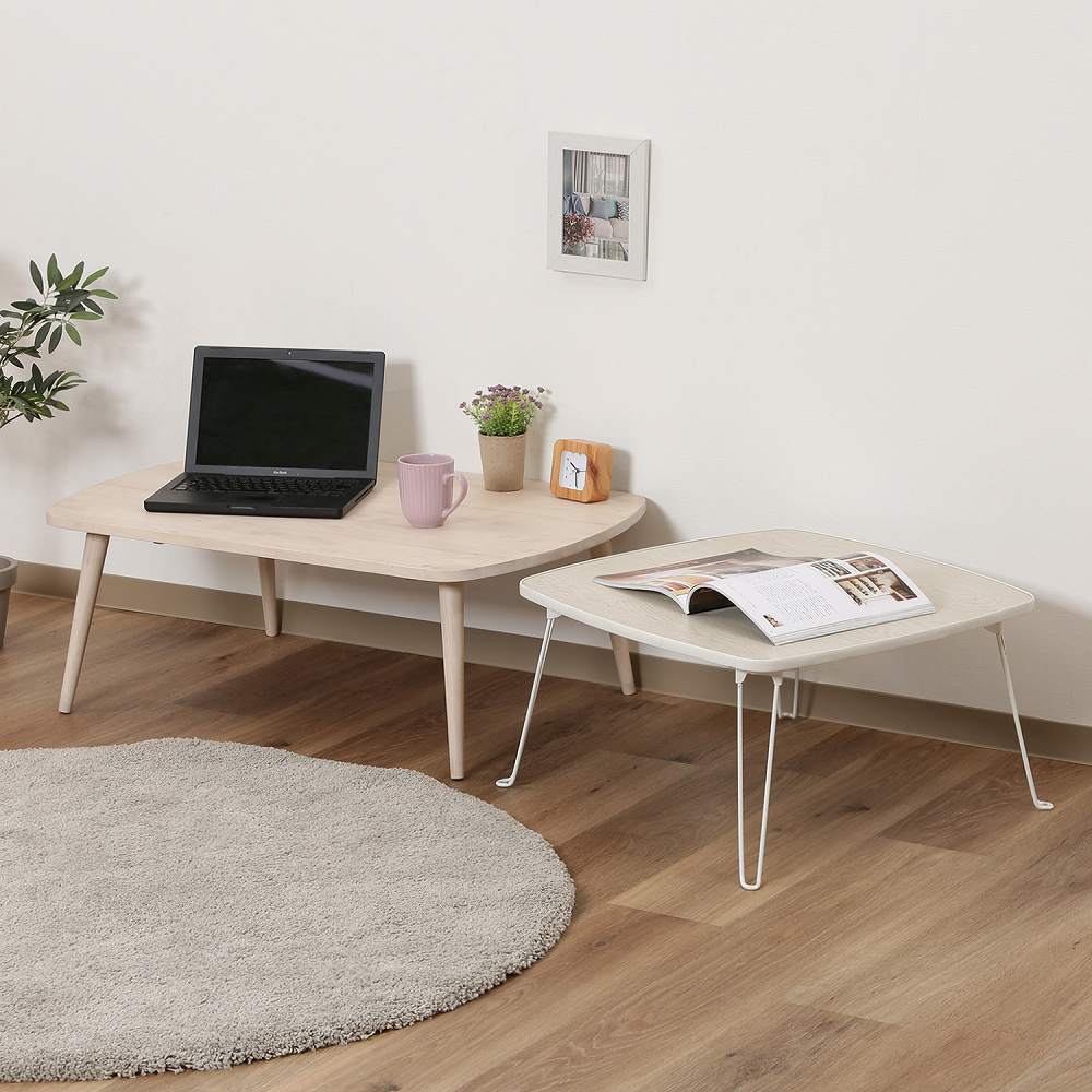 少し丸みのあるスクエア型がおしゃれな折りたたみローテーブル