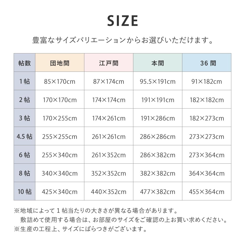生産工程上、サイズにばらつきがございます。