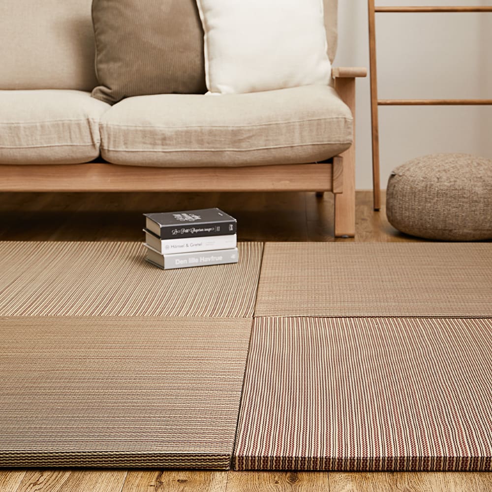 洋室・和室を問わず使えるカラフルで可愛い縁なしの置き畳。1枚が約1.0kgの軽量タイプなので、女性の方でも持ち上げや移動がしやすく、簡単に空間作りをお楽しみいただけます。ふんわり柔らかな使い心地。厚さ約2.5cmと十分な厚みで防音・クッション性も◎裏面には滑りにくい加工を付けているから、安心してお使いいただけます。