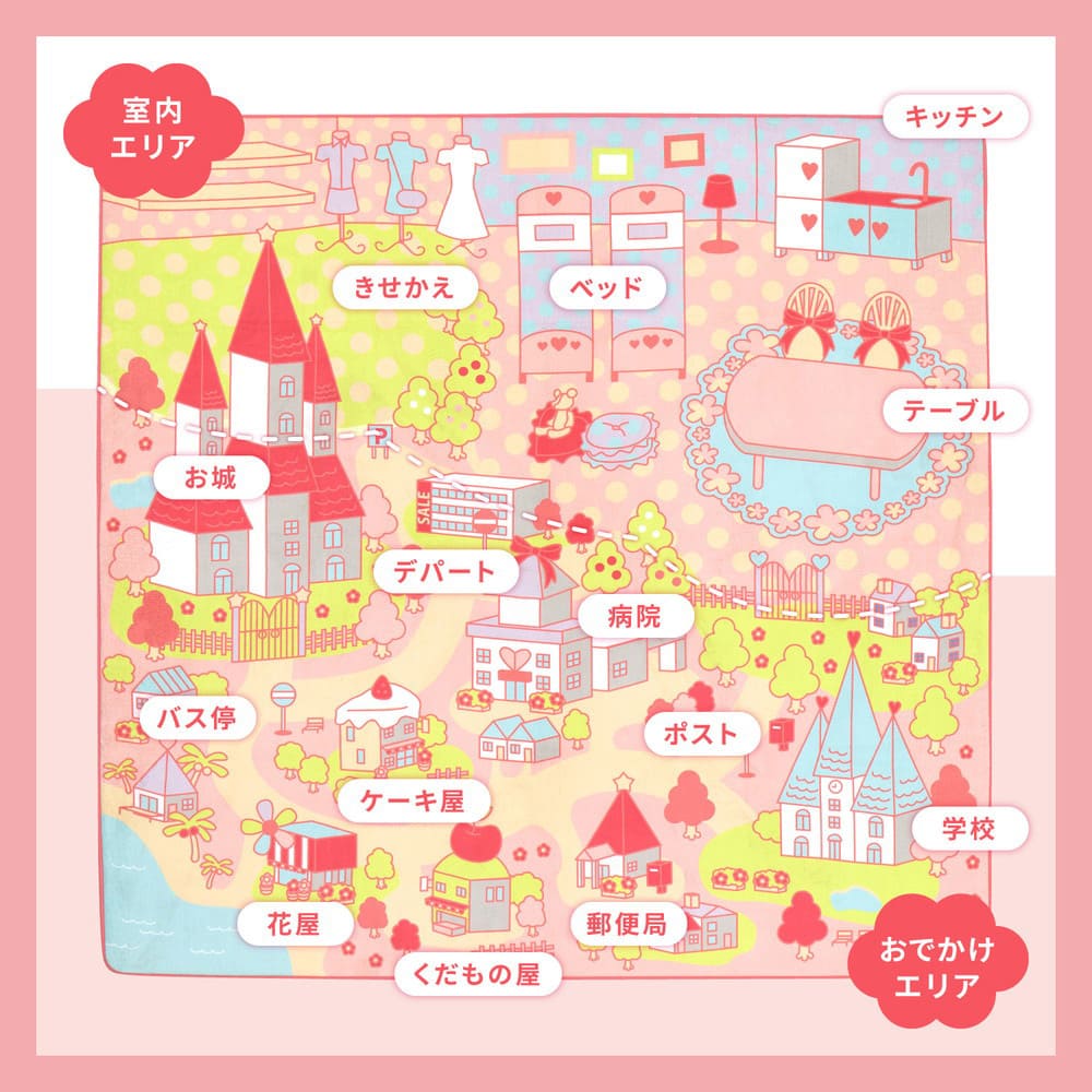 _x000D_ お城やリボンなどかわいいイラストは、女の子に人気のマストデザイン。キッチンやベッドなどのお家エリア、学校や病院などのお出かけエリアと分かれており、こどもの想像力や遊び心をくすぐるデザインです。
