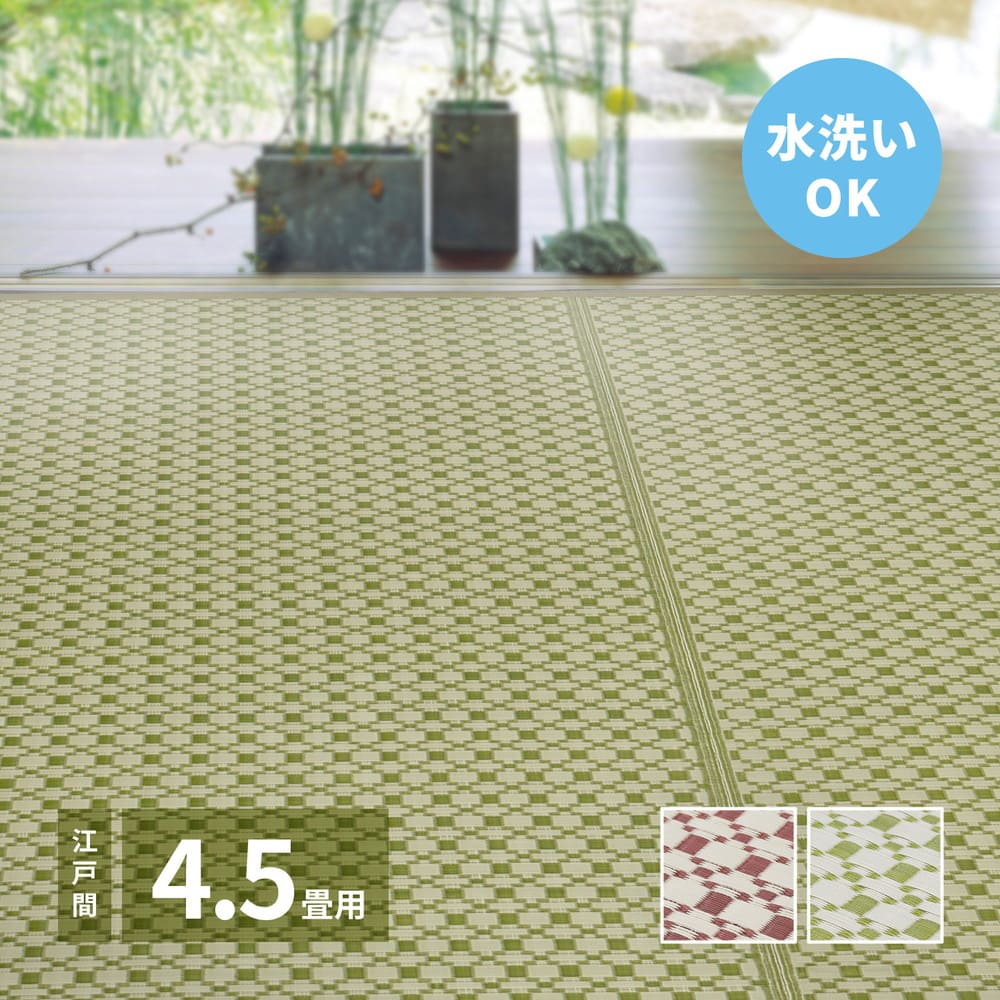 柄上敷き い草風カーペット 洗えるラグ 市松柄