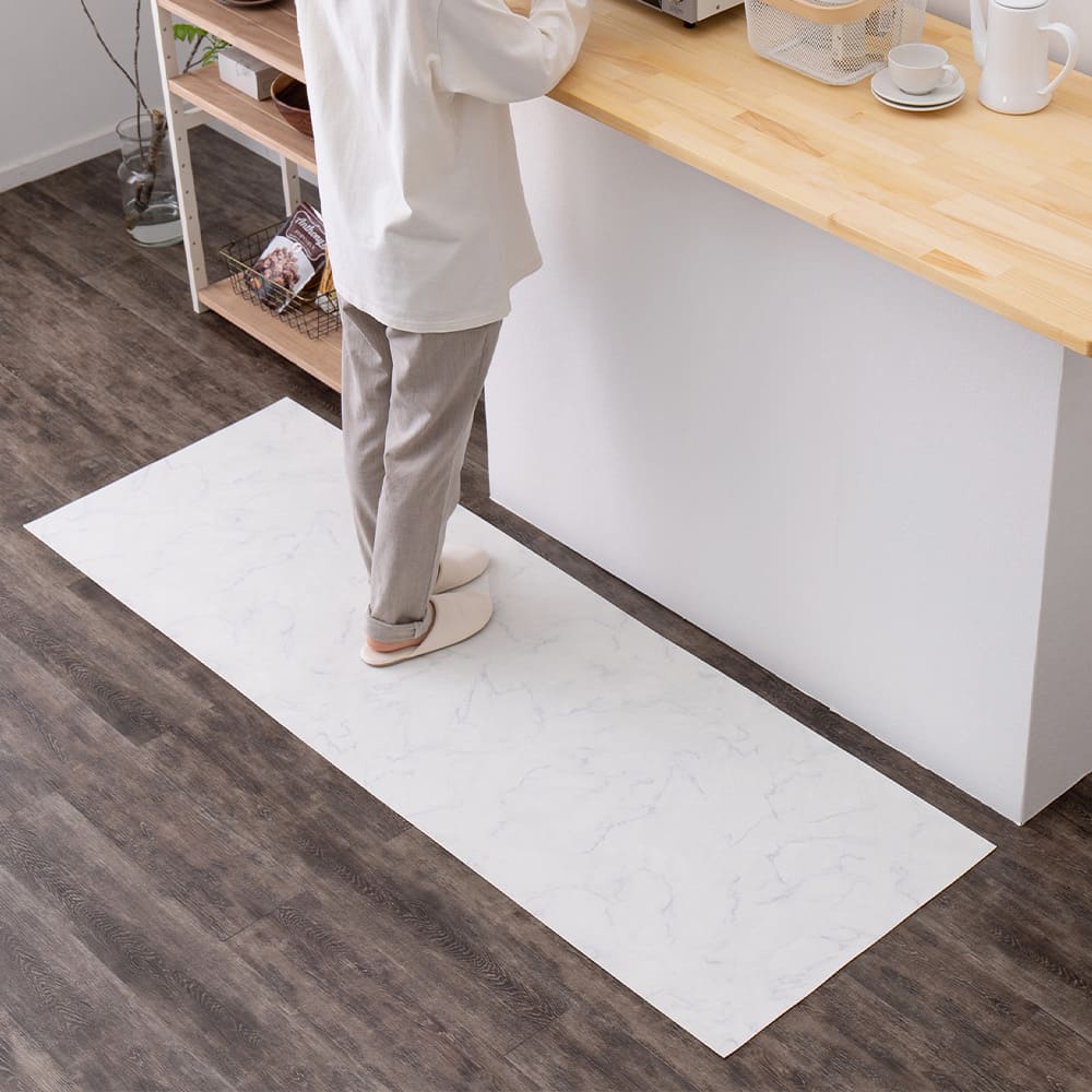 サッと拭けてお手入れ簡単素材。木目調、石目調とデザイン豊富。サイズもたくさんあってDIYにも最適な、床材でありアクセントラグでもあるクッションフロア。