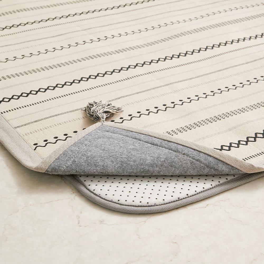 さらっとした踏み心地とインド綿ならではの素朴な仕上がりが魅力のラグ。四隅に付いたフサ(タッセル)でおしゃれ度アップ!吸湿発乾性が良く年中使えるタッチ感もインド綿の人気の秘密です。お客様のご要望に応えて、すべり止め付きを開発しました!