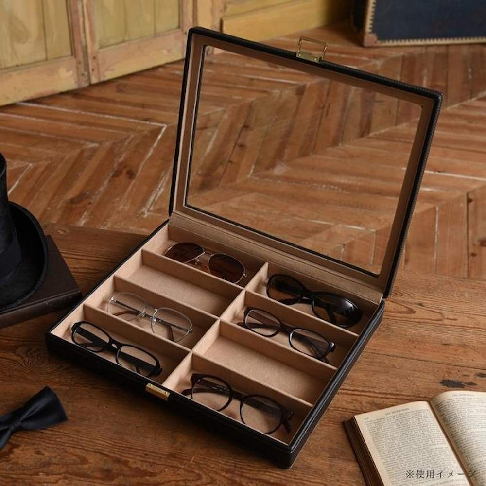 シックなメガネケース。メガネやサングラスをディスプレイ感覚で8本収納できます。ほこりを嫌うメガネもばっちりガードしてくれます。※モニターの設定などにより、実際の商品と色味や素材の見え方が異なる場合がございます。あらかじめご了承ください。Elementum(エレメンタム)シリーズ。