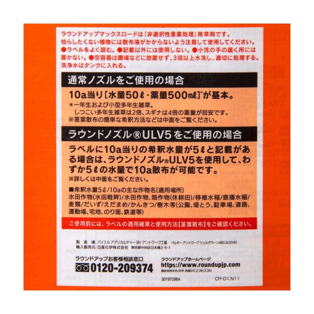有効成分:カリウム=N-(ホスホノメチル)グリシナート48.0%、成分:グリホサートカリウム塩・水・界面活性剤等