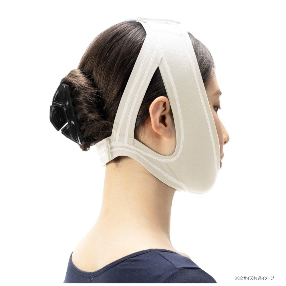 寝ているときじゃまにならない形状。あご関節の脱臼予防に。2点留めで「かんたん」。装着。面ファスナーで「しっかり」固定。綿が主体の「やさしい」素材。耳が出るように着けてください。※値がぎりぎりの場合は1サイズ下をおすすめします。装着方法:(1)あごに当たる部分をあごに当て、。装着位置を確認します。(2)面ファスナーの両端を持ち、首の後ろにまわし、首の後ろでとめます。((1))(右手側のが上になります)(3)面ファスナーの両端を持ち、あごにフィットするように頭の上でとめます。((2))(右手側の(B面)が上になります)(4)後ろから見た図固定力を微調整してください。