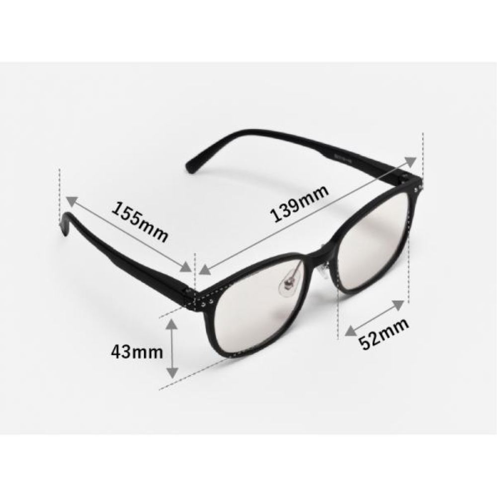 レンズ幅52mm/ブリッジ幅18mm/フレーム幅139mm/天地幅43mm/テンプル155mm