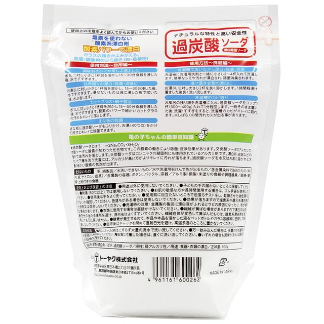 塩素を使わない酸素系漂白剤 界面活性剤を使用していないため環境に優しく安心してお使いいただけます。 酸素のパワーで細かいカットグラスの汚れを綺麗に落とします。 台所・衣類の漂白や除菌・消臭等幅広く使えます。 過炭酸ソーダは、別名「漂白除菌ソーダ」とも言われています。 用途、食器・衣類の漂白