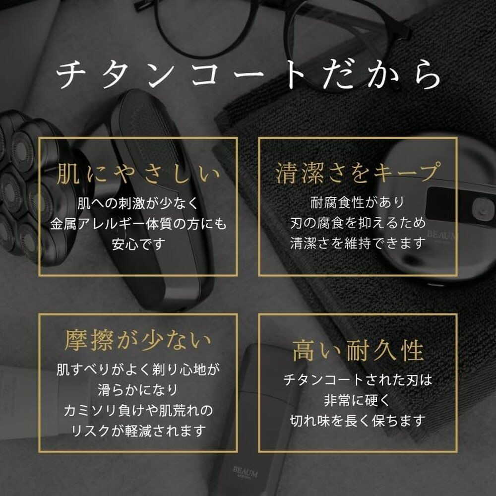 ●肌にやさしいチタンコーティング ●肌の凹凸にフィットし、スムーズなシェービングを実現できる独立可動フローティングヘッド採用 ●IPX7相当で、お風呂での使用も可能。 ●USBケーブルで充電可能 ●誤作動を防止し、持ち運びにも安心なトラベルロック機能付き