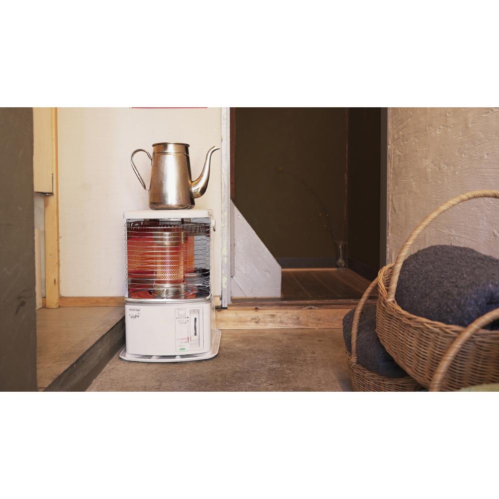 持ち運びに便利なキャリングハンドルタイプ。スリムな横幅で省スペースなのにしっかり暖かいストーブです。