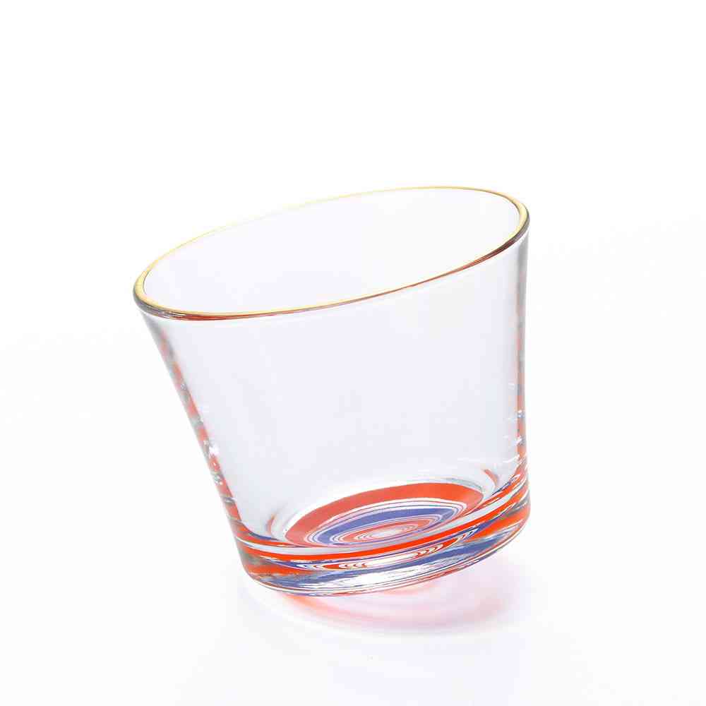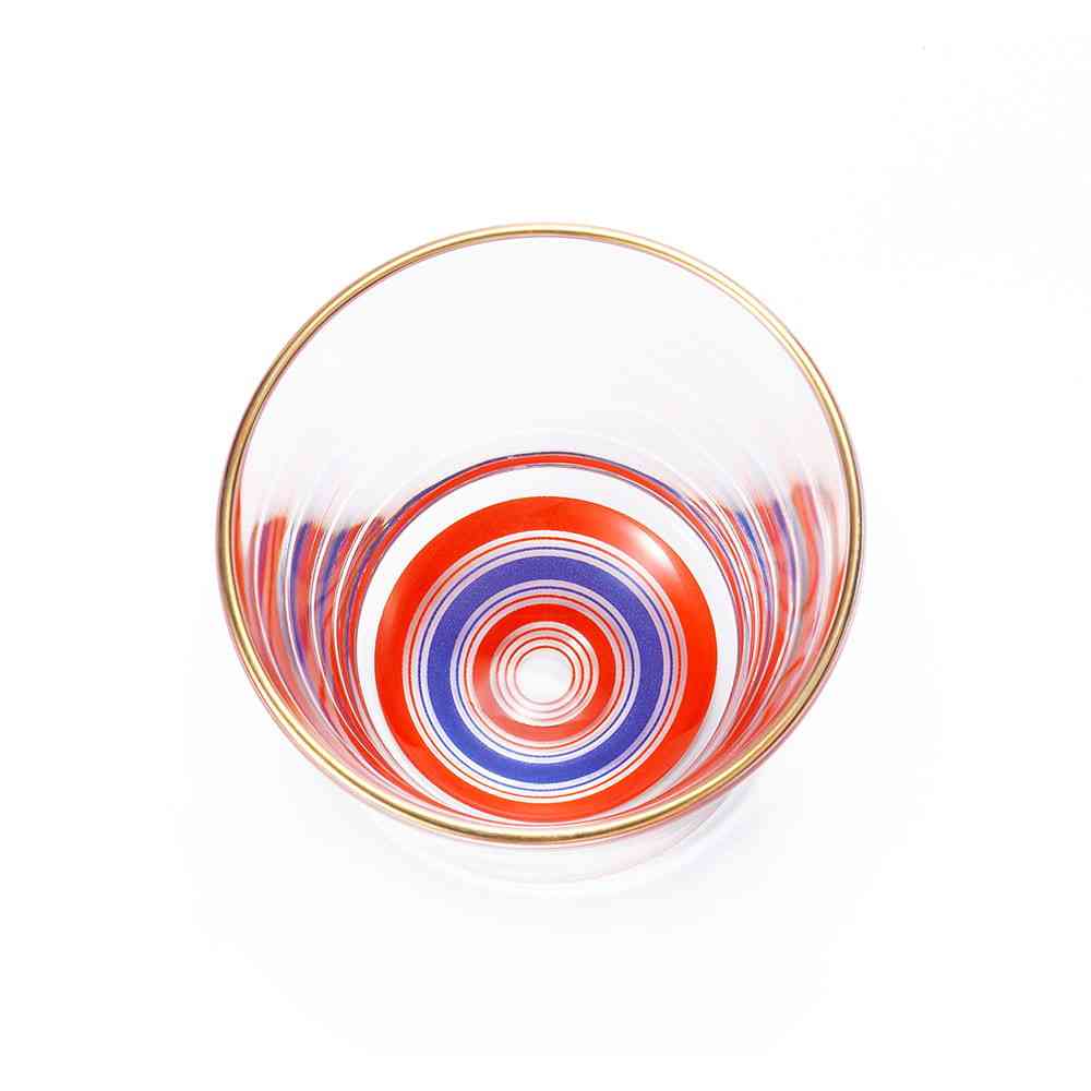 日本各地に残る伝統独楽の魅力的な色彩や絵柄をガラス食器に写しとったグラスシリーズです。元来、独楽には「物事がうまく回る」という縁起がありますが、地域によって色彩や絵柄は異なり、それぞれに大切な縁起が込められています。 【大山こま】家内安全・商売繁盛…江戸時代中頃から江戸庶民の信仰として行楽として人気のあった「大山詣で」。参詣客はこぞって大山こまをお土産にしていきました。 赤・藍・紫の模様は仏器からきており、家内安全、商売繁盛の意味が込められています。 色落ちすることがありますので食器洗い乾燥機でのご使用はお避けください。洗浄の際は優しく手洗いをおすすめします。 成形上、底面中央の膨らみ方に多少のバラつきがございます。また、「実用容量」とは傾けた状態で液体が溢れない容量の目安です。