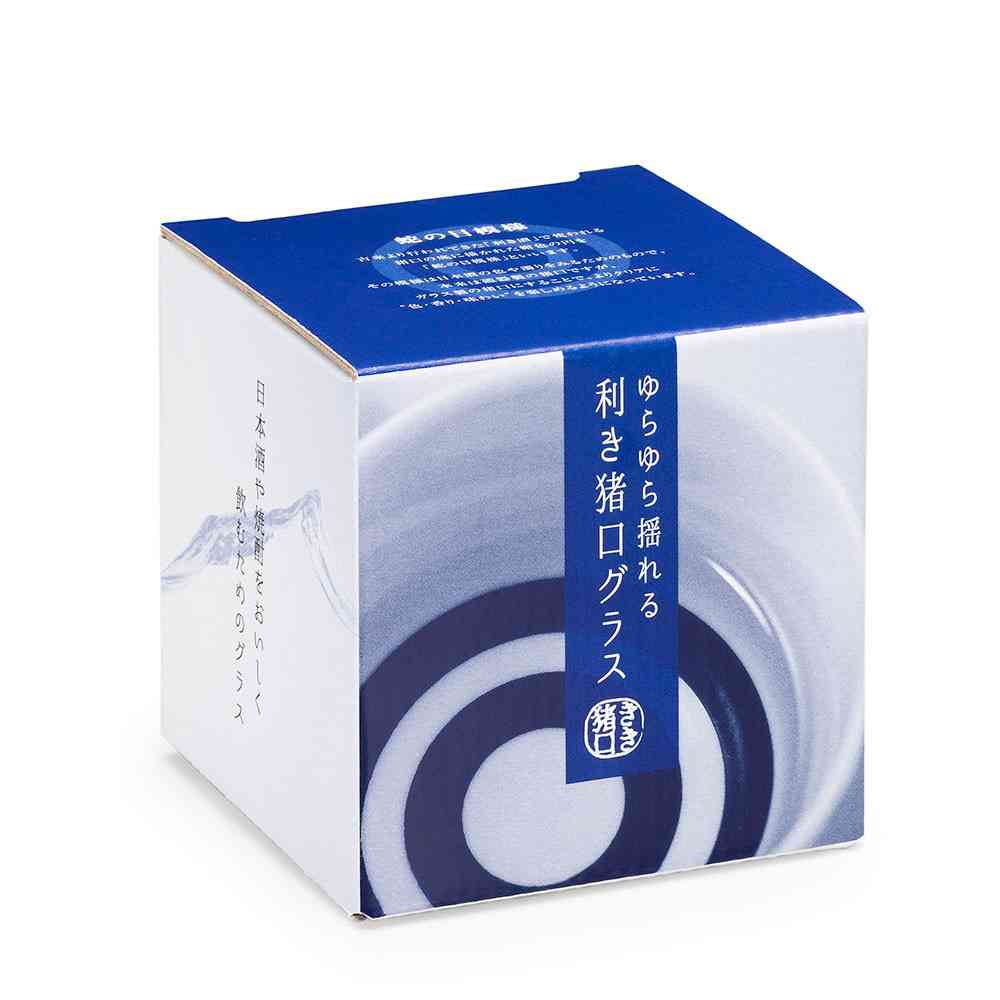 古来より行われていた「利き酒」で使われる猪口の底の「蛇の目模様」が描かれています。 底面中央が膨らんだ形状になっております。 成形上、底面中央の膨らみ方に多少のバラつきがございます。 また、「実用容量」とは傾けた状態で液体が溢れない容量の目安です。