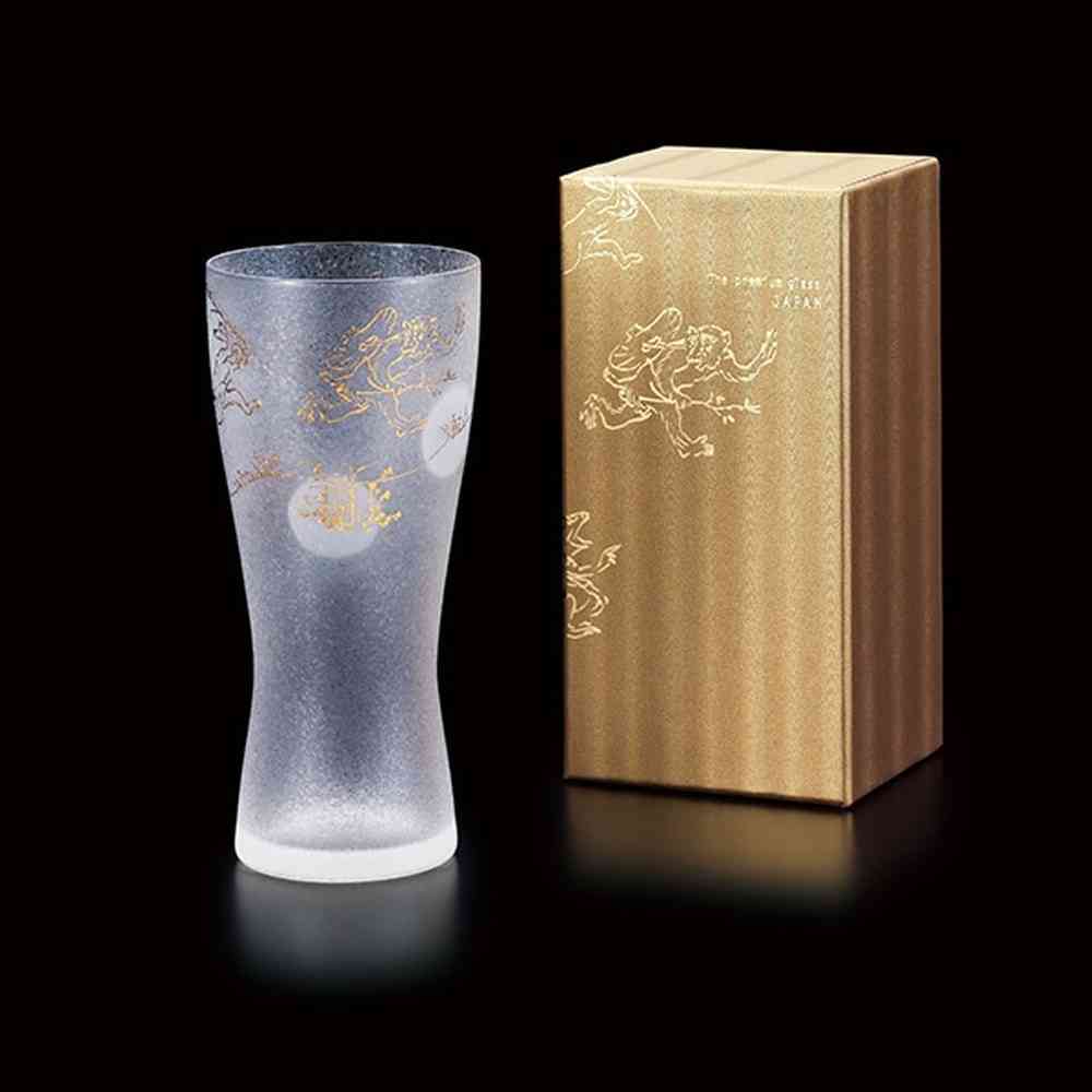 日本古来の文化や意匠を現代の技術でグラスに表現。平安時代に描かれた絵巻物、国宝「鳥獣戯画」をあしらったグラスです。グラス内面の特殊な加工によりきめ細かな泡が生まれ、いつものビールがより美味しく感じられます。パッケージに高級感ある化粧箱を使っており、贈り物に最適です。 色落ちすることがありますので食器洗い乾燥機でのご使用はお避けください。洗浄の際は優しく手洗いをおすすめします。