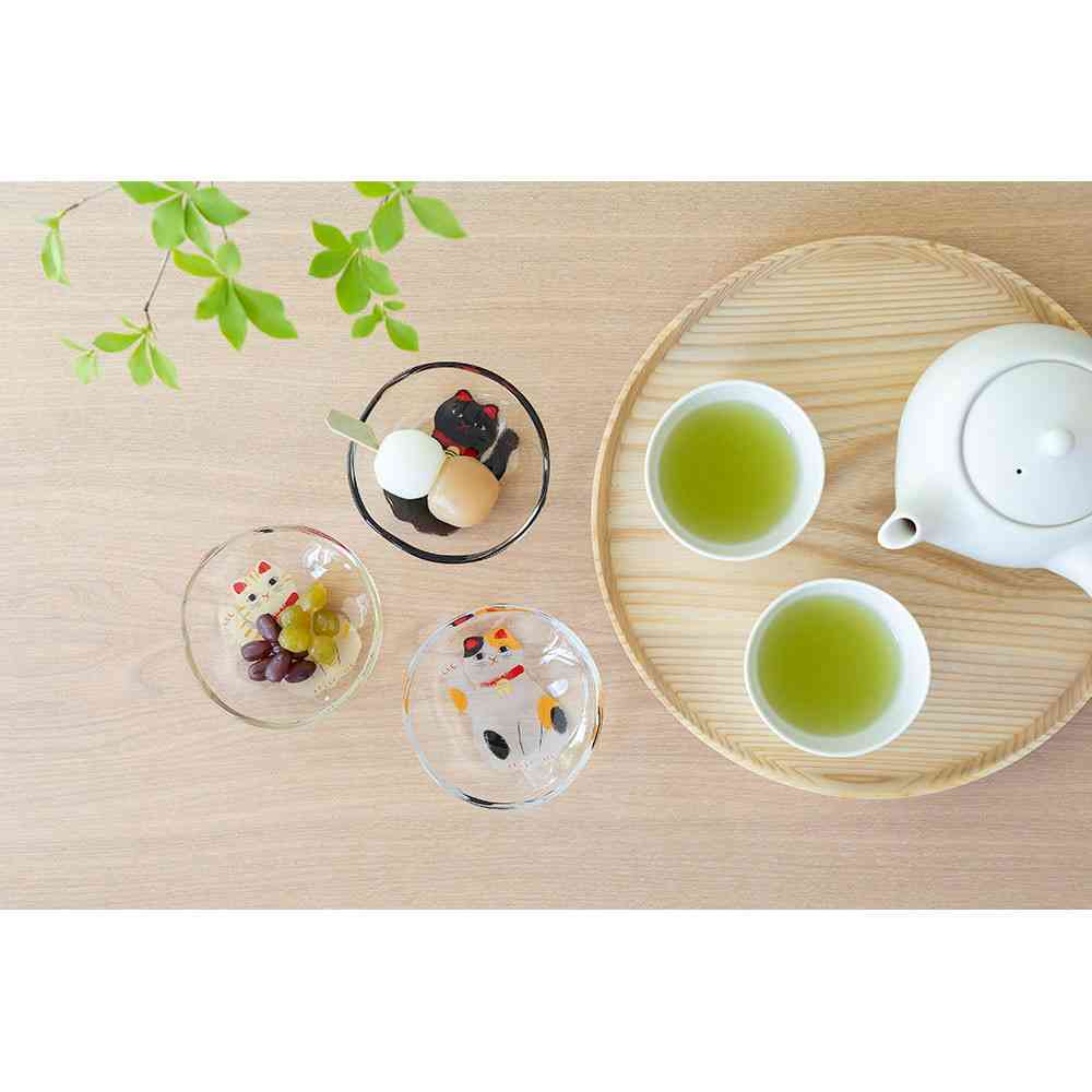 猫は古来、ネズミから農作物や蚕を守る為重宝され、時と共に手招きをした猫の置物が縁起物となりました。諸説ありますが、右手は金運や幸運、左手は人を招くと伝えられ、色や柄によっても様々な謂れがある様です。 【ミケ猫】商売繁盛…招き猫にミケが多いのは、昔ネズミ退治の繁盛猫として伝わった為とか。 手作り風仕上げにて成形しておりますので、サイズ・容量等に多少のバラつきがございます。