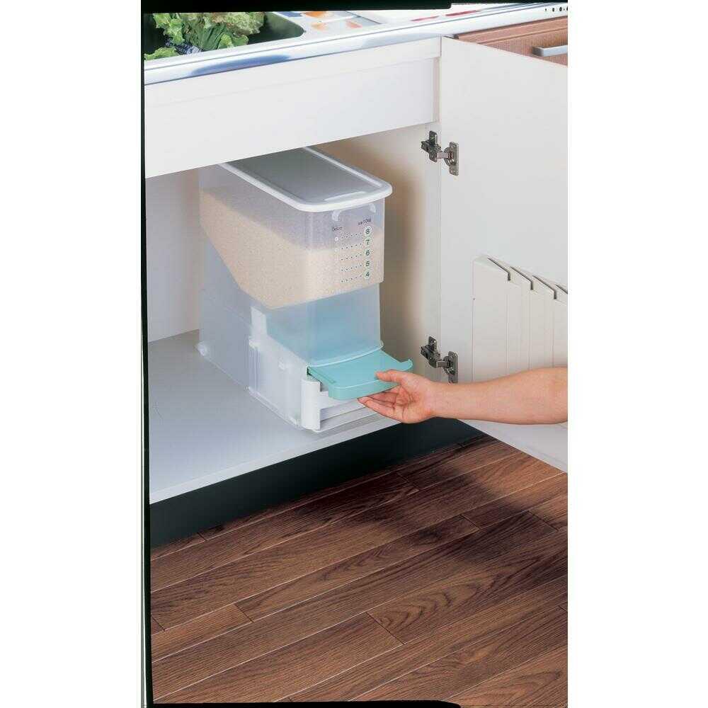 プラスチック製で簡単に分解でき、丸洗いできる計量米びつ 容量10kg