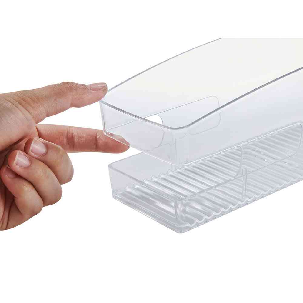 サッと収納・サッと取り出し! 冷蔵庫内をスマートに 収納底は波板状なので液漏れしてもべたつきにくい 片手でも取り出しやすい パウチ総菜入れなどに