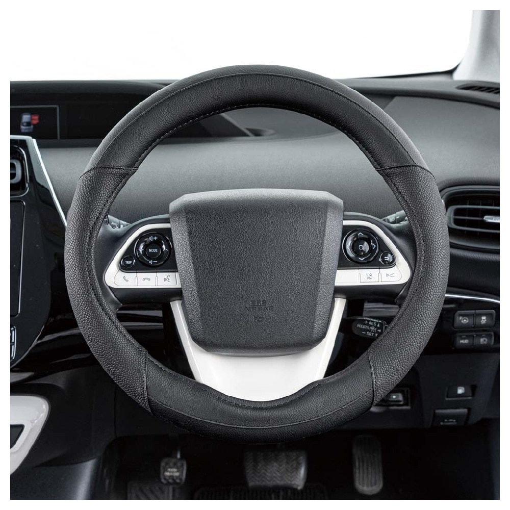 3本スポークハンドル専用に設計されたレザー調のハンドルカバー。 グリップ部分にはシボ加工レザーを使用。 スイッチパネルやスポークに干渉しないえぐり付のデザインと、リングの隙間が見えにくい特許登録リングでスッキリとした見た目になります。