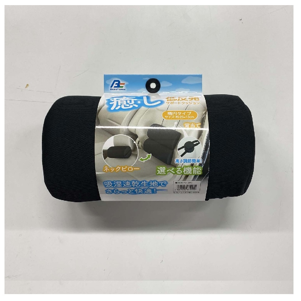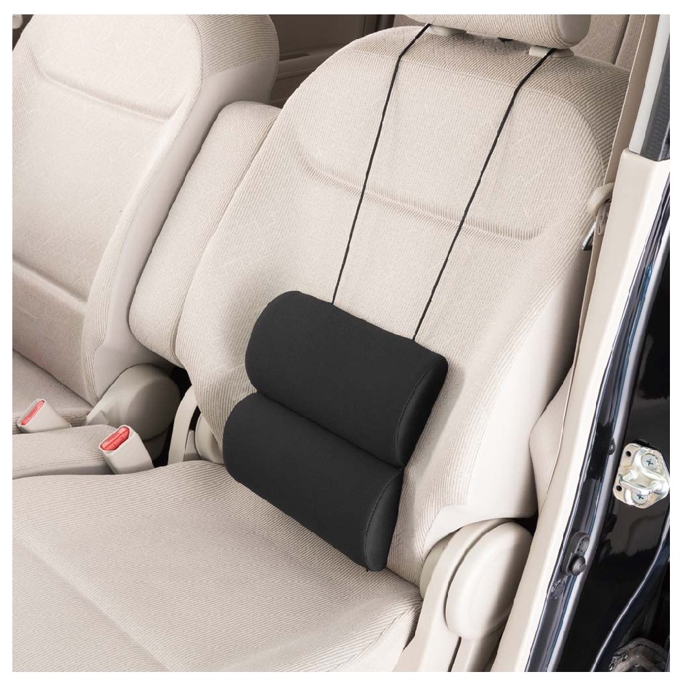 心地良い触感の低反発ウレタンフォームを使用したマルチに使えるサポートクッション かまぼこ型のクッションが2つつながった形状で、円柱型にしてヘッドレストに取り付ければネッククッション、広げた状態で使えば背当て用クッションとして使えます。 表地は吸湿速乾ニットを使用しているので肌触りはサラッと快適。高さ調整可能なアジャスター付きです。