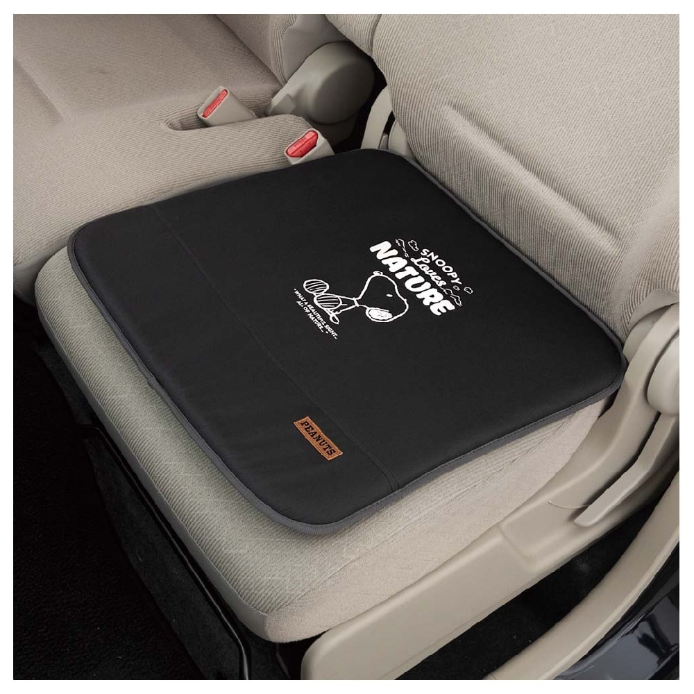 スヌーピーのプリントが可愛いシート用クッション キズや汚れに強い防水素材を使用したクッションで「PEANUTS」ロゴのワッペンがデザインのアクセント。 中材はウレタンフォームで程よい座り心地になります。