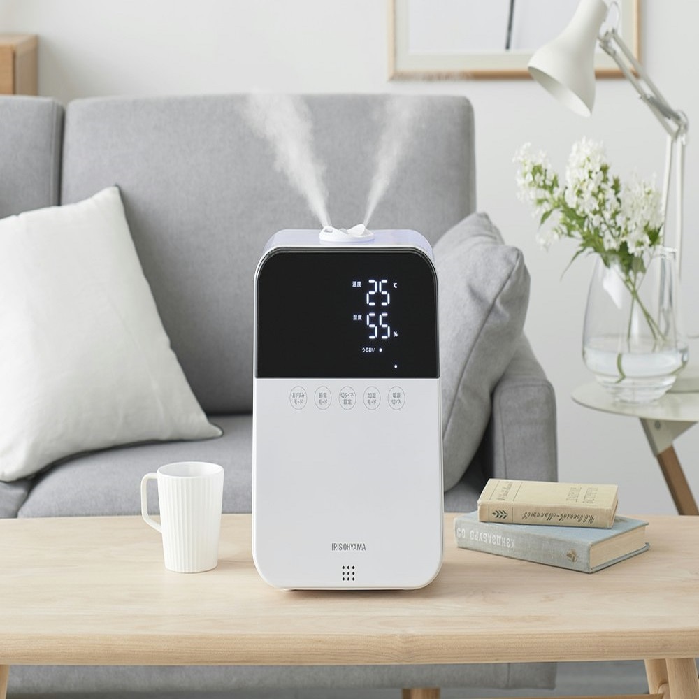 コンパクトでインテリアにもマッチするデザイン性の高いハイブリッド式加湿器です。湿度・温度が見えるデジタル表示。静電のタッチパネルで楽に操作ができます。離れたところから操作ができるリモコン付です。アロマトレーにお好みのアロマオイル(市販)を滴下すると、アロマの香りが広がります。
