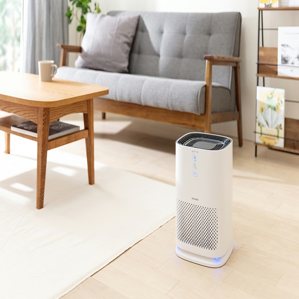 使い勝手の良い小型サイズなので、持ち運びラクラクで場所を選ばず置けます。運転モードは弱・中・強・おやすみの4モード搭載されています。フィルターのお手入れ時期になると、フィルター掃除ボタンが点灯してお知らせします。底面が光るので、おしゃれなインテリアとしてもご使用できます。