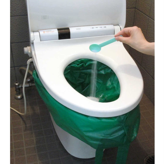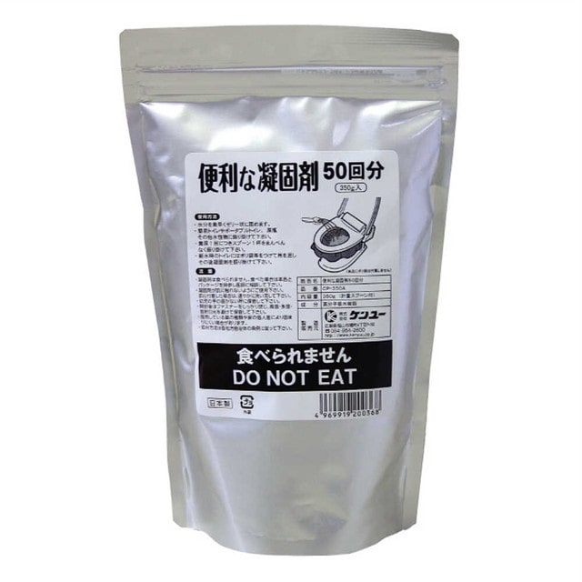 水分を素早くゼリー状に固めます。簡易トイレやポータブルトイレ、尿瓶その他水性物に振りかけて下さい。糞尿1回につきスプーン1杯をまんべんなく振りかけて下さい。断水時のトイレにはポリ袋等をつけて用を足してその後凝固剤を振りかけて下さい。