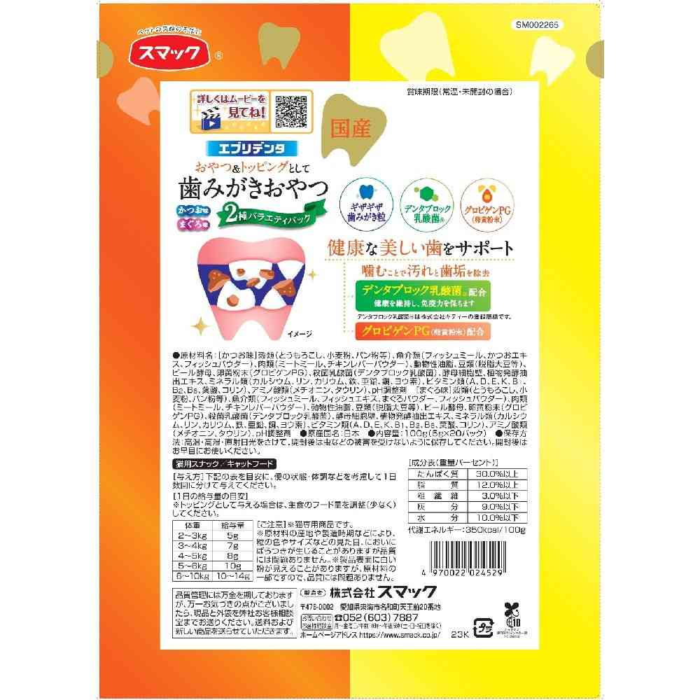 【かつお味】穀類(とうもろこし、小麦粉、パン粉等)、魚介類(フィッシュミール、かつおエキス、フィッシュパウダー)、肉類(ミートミール、チキンレバーパウダー)、動物性油脂、豆類(脱脂大豆等)、ビール酵母、卵黄粉末(グロビゲンPG)、殺菌乳酸菌(デンタブロック乳酸菌)、酵母細胞壁、植物発酵抽出エキス、ミネラル類(カルシウム、リン、カリウム、鉄、亜鉛、銅、ヨウ素)、ビタミン類(A、D、E、K、B1、B2、B6、葉酸、コリン)、アミノ酸類(メチオニン、タウリン)、pH調整剤【まぐろ味】穀類(とうもろこし、小麦粉、パン粉等)、魚介類(フィッシュミール、フィッシュエキス、まぐろパウダー、フィッシュパウダー)、肉類(ミートミール、チキンレバーパウダー)、動物性油脂、豆類(脱脂大豆等)、ビール酵母、卵黄粉末(グロビゲンPG)、殺菌乳酸菌(デンタブロック乳酸菌)、酵母細胞壁、植物発酵抽出エキス、ミネラル類(カルシウム、リン、カリウム、鉄、亜鉛、銅、ヨウ素)、ビタミン類(A、D、E、K、B1、B2、B6、葉酸、コリン)、アミノ酸類(メチオニン、タウリン)、pH調整剤粗 たん白質 30.0%以上 粗脂肪 10.0%以上 粗繊維 5.0%以下 粗灰分 9.0%以下 水分 10.0%以下