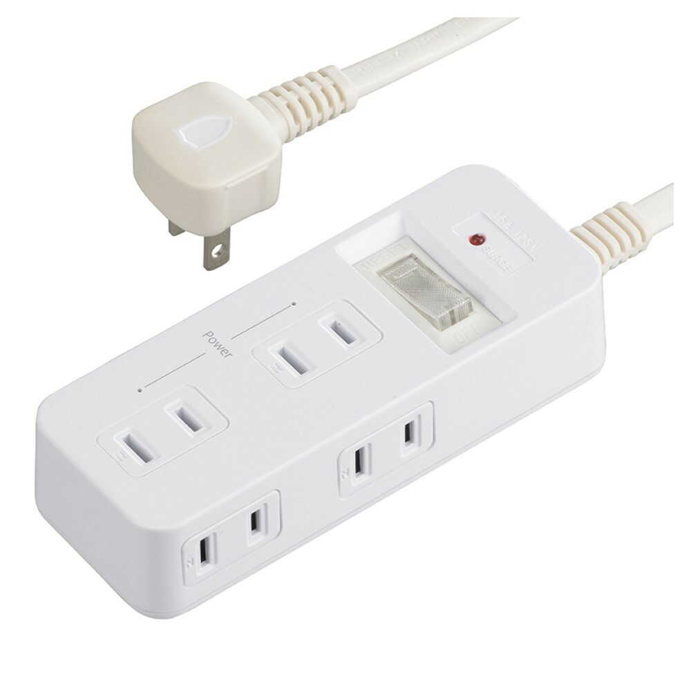 通電火災対策、特許技術採用、特許第5853076号、差込口の温度が150度、発煙に至る前に自動的に通電を遮断、雷ガード機能付き、雷サージ軽減素子内蔵、落雷時のダメージを軽減、過電流防止ブレーカー付き、一括集中スイッチ、容量オーバーによる過電流を感知、ブレーカーが作動、集中スイッチ、トラッキング火災防止プラグ、丈夫な二重被ふくコード、通電表示LEDランプ付き