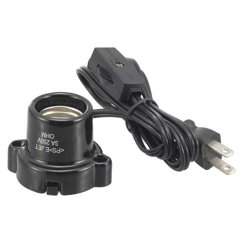 熱に強い磁器製、ロータリー式中間スイッチ、コードが付いて結線加工がいりません、3A-250V、口金E26用、100ワット、コード長さ1.5m