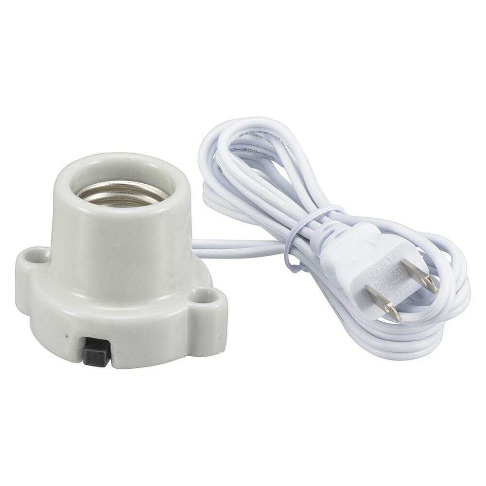 ● 熱に強い磁器製です ● コードが付いて結線加工がいりません ● 3A-250V 口金E26用 ● 100ワットまで ● コード長さ1.5m