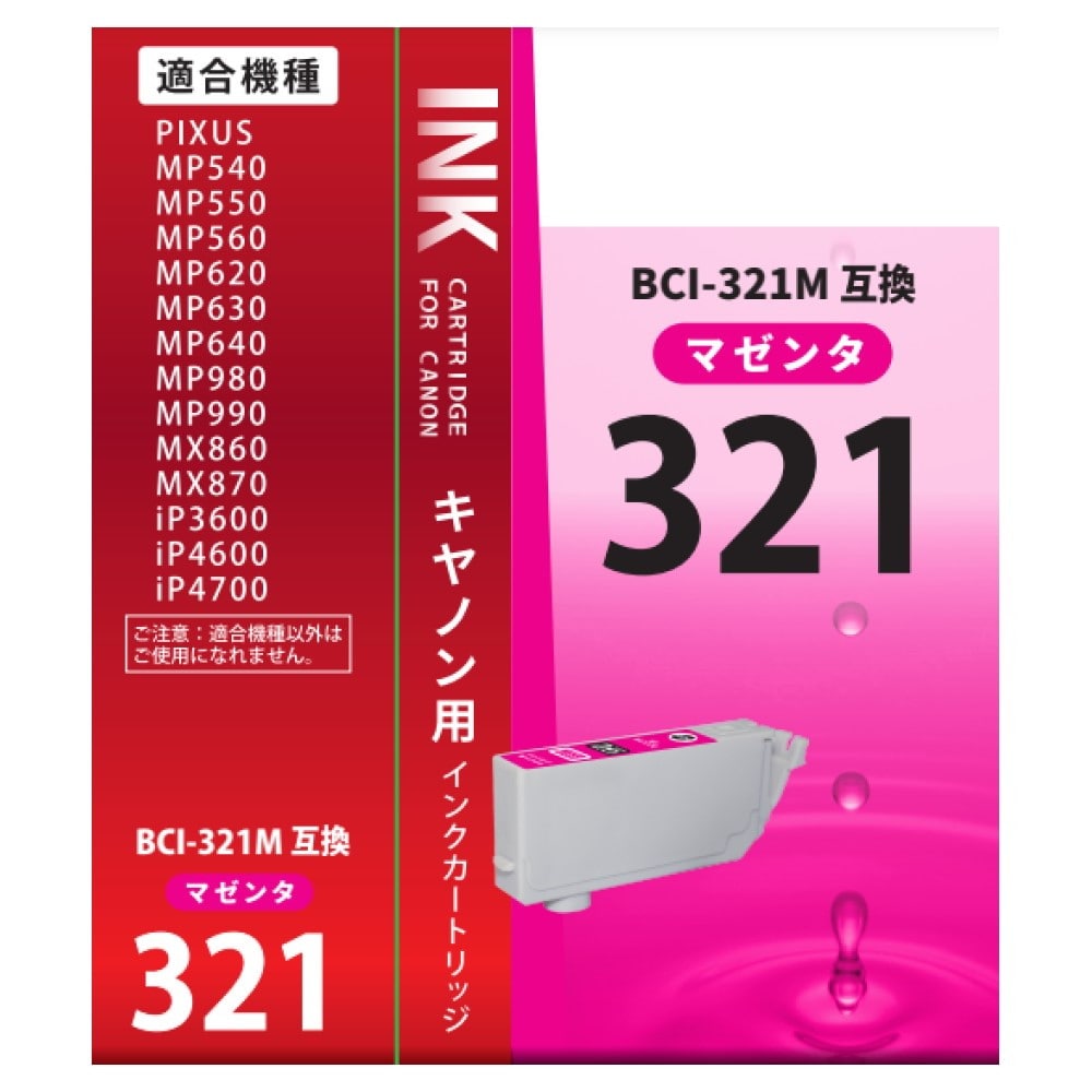 キヤノン、純正インクカートリッジ、BCI-321M、染料マゼンタ、互換インクカートリッジ、1個入り、残量表示完全対応