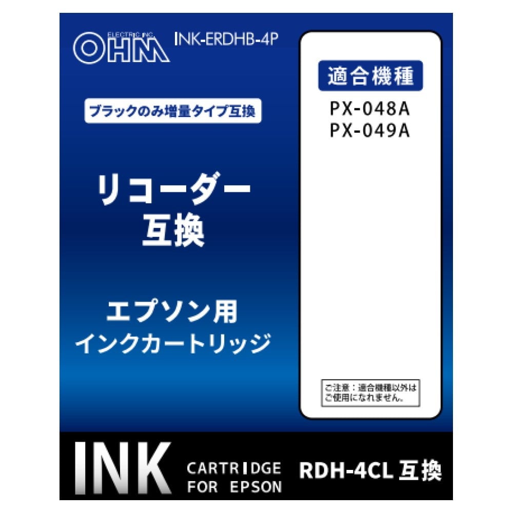 エプソン、純正インクカートリッジ、リコーダー、顔料4色パック、RDH-4CL、互換インクカートリッジ、プリンター5年間保証対象品
