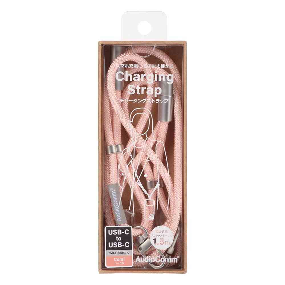 ● USB端子付きだから充電ケーブルとしても使えます ● 編み込みストラップケーブル ● USB-C to USB-C ● カラーはコーラル