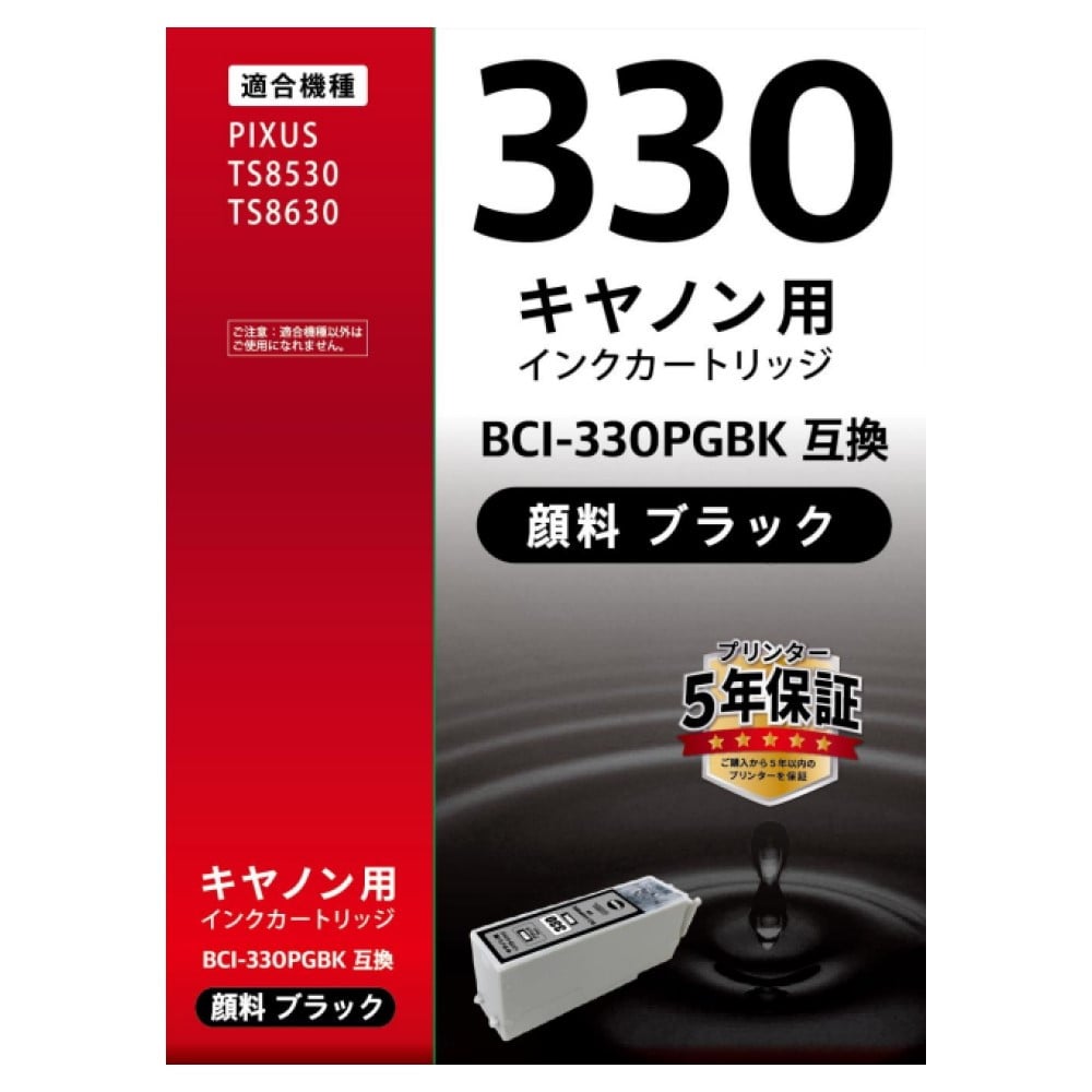 キヤノン、プリンター用インクカートリッジ、キヤノン純正インク、BCI-330PGBK、顔料ブラック、1個入り、プリンター5年間保証対象品