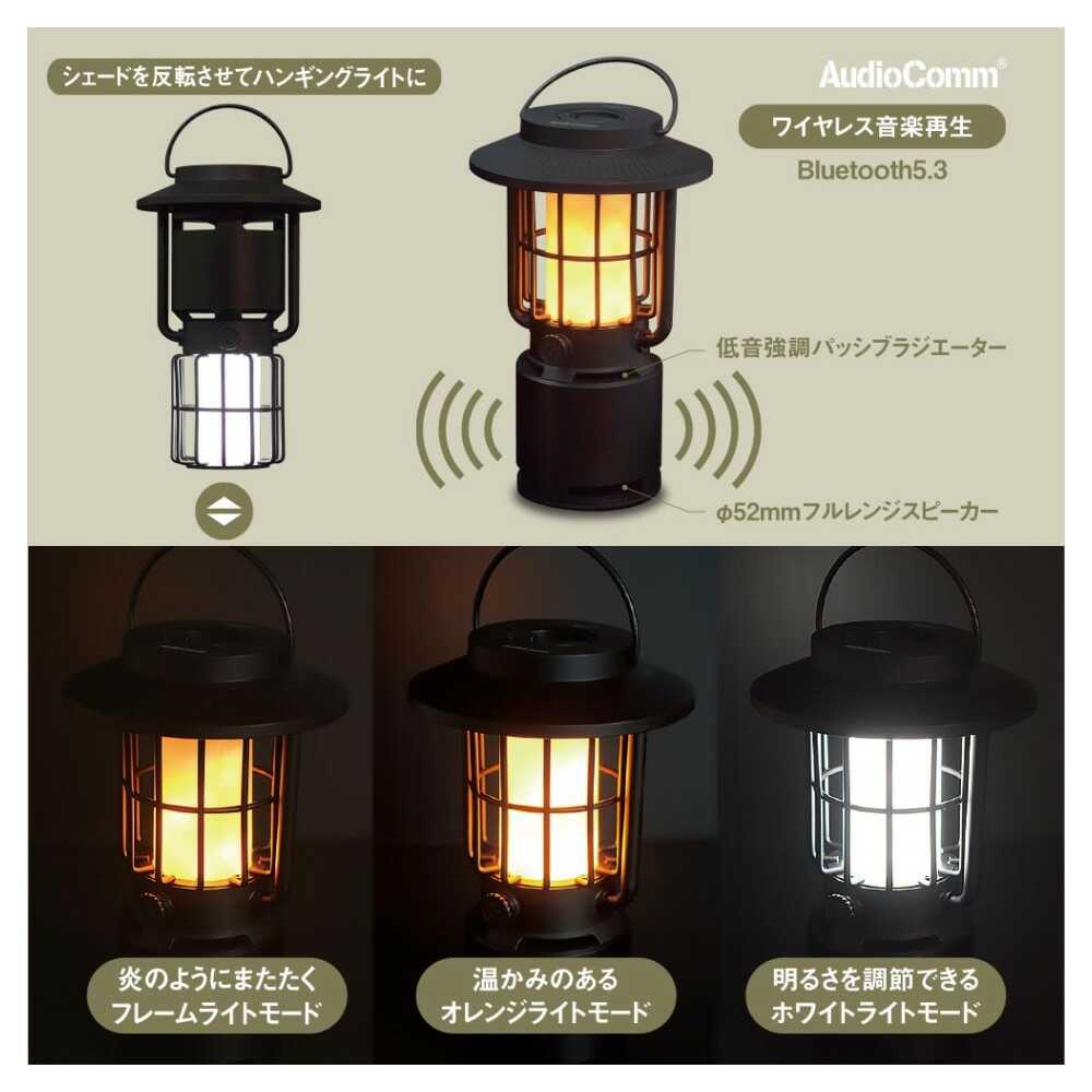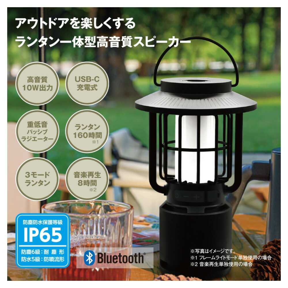 アウトドア、楽しくする、ランタン一体型高音質スピーカー、ムードを演出する、3つのライトモード、フレームライトモード、オレンジライトモード、ホワイトライトモード、卓上ライト、ハンギングライト、2ウェイ、高音質10W出力スピーカー、ワイヤレス音楽再生、Bluetooth5.3、低音強調パッシブラジエーター搭載、φ52mmフルレンジスピーカー搭載、USB-C充電式、保護等級IP65、防塵防水形