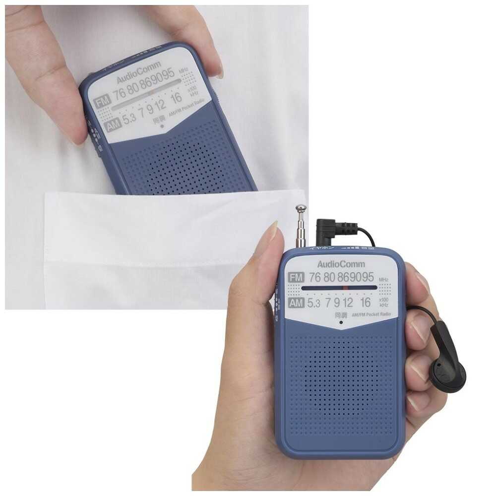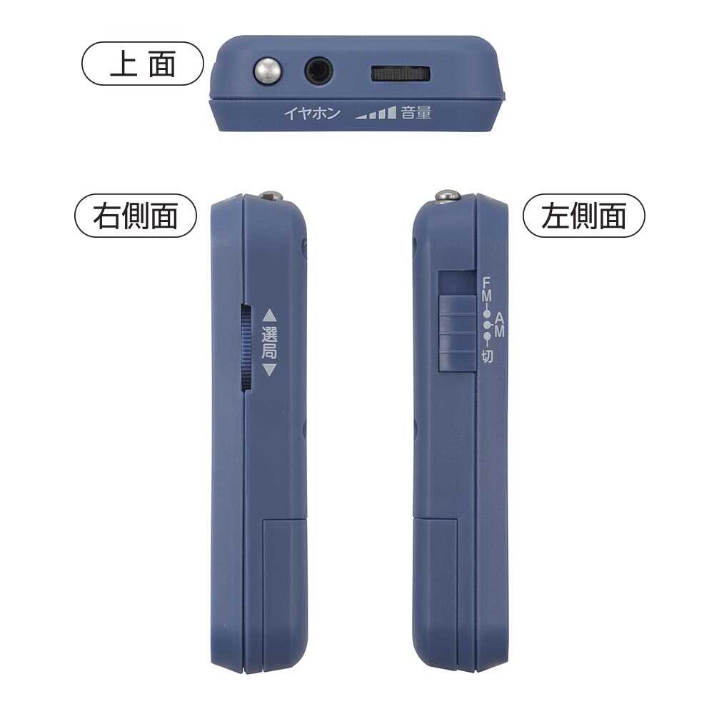ポケットラジオ、コンパクトサイズ、DSP 、IC受信、聴きやすいクリアな音質、光る同調ランプ、選局かんたん、イヤホン、スピーカー、2WAY出力、ワイドFM対応、モノラル受信、FMロッドアンテナ搭載、片耳イヤホン付属、ブルー