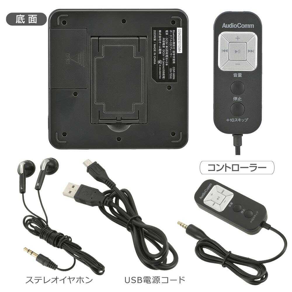 語学学習、リピート機能、スピード調整、ワンタッチプレイバック、オフタイマー、らくらくスキップ、Bluetooth搭載、ワイヤレスイヤホン、レジューム再生機能付、低音強調機能付き、迫力ある音楽再生、音飛び防止機能付き、MP3ディスク再生対応、音声出力端子付き、乾電池/USB2電源対応、USB電源コード付属、再生/一時停止、音量調節、スキップ、コントローラー付属、ホールド機能、ボタンの誤操作を防止、立てて使える、スタンド付き、本体一体型、2段階調節、ステレオイヤホン付属、ブラック