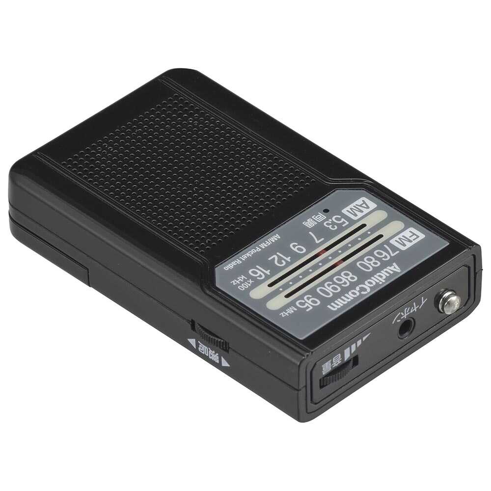 ポケットサイズ、コンパクトラジオ、電池長持ち、イヤホン、スピーカー、2WAY出力、モノラル受信、光る同調ランプ付き、FMロッドアンテナ搭載、ワイドFM対応、片耳イヤホン付属、ブラック