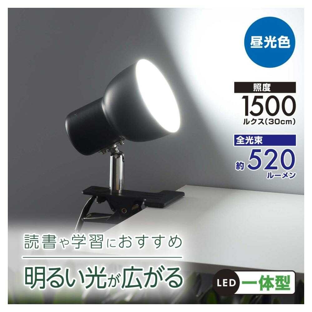 ● LED一体型 ● 省エネ・長寿命のLED使用 ● 照度は1500ルクス(直下30cm)、全光束は約520ルーメン ● 光の向きが自由に変えられます ● 強力クリップで簡単に固定できます ● 中間スイッチ付き